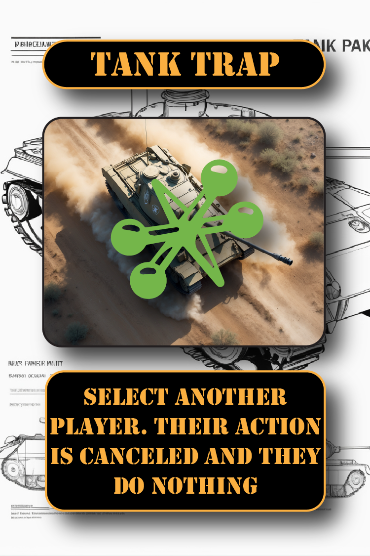 Tanks is a game of maneuvers. Use your deck to get your tank in position and get the drop on your opponents. Battle it out in a field of wrecked tanks, storage containers, and anti-tank mines.